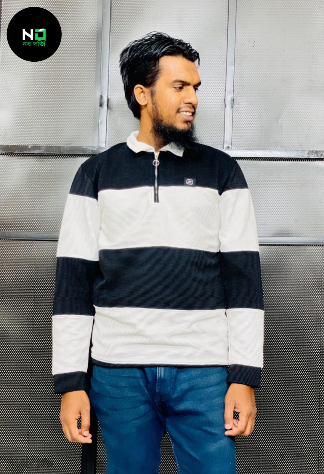 ✅ ডিজাইন: ট্রেন্ডি হাফ জিপ + স্ট্রাইপ স্টাইল