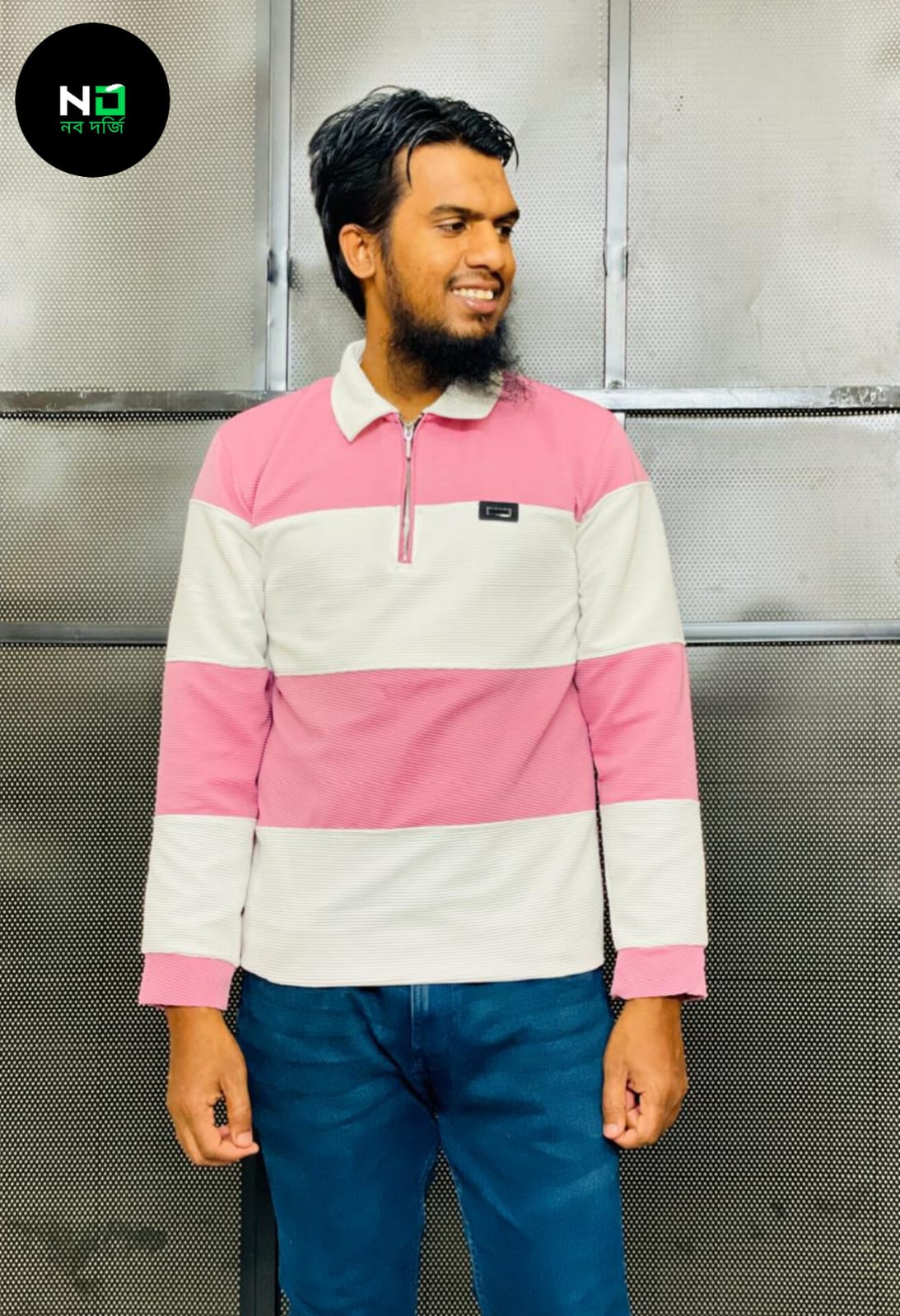✅ ডিজাইন: ট্রেন্ডি হাফ জিপ + স্ট্রাইপ স্টাইল